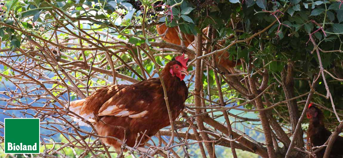 Auf dem Meierhof hat jedes Huhn Auslauf ins Freie. Auf mehreren großen Streuobstwiesen können die Hühner frei herumlaufen. Besonders beliebt sind die Obstbäume und die Holunderhecken. Unter dem Blätterdach fühlen sich die Hühner sicher und es gibt immer etwas zu entdecken ...